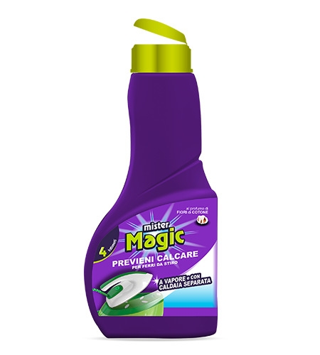 Anticalcar solutie pentru fier de calcat Mister Magic – Este indicat pentru a prelungi durata de folosire a fierului de calcat sau a statiei de calcat. Apa calcaroasa deterioreaza aparatele electrodomestice, le uzeaza in timp.