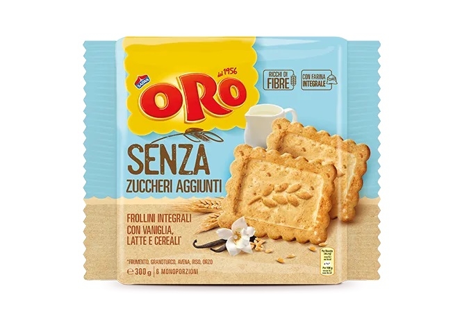 Biscuiti integrali cu vanilie, lapte si cereale, fara adaos de zahar, Oro Saiwa, 300g