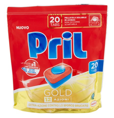 Detergentul italian pentru masina de spalat vase Pril 10 Gold are zece functii diferite intr-o singura capsula pentru vase curate, stralucitoare si fara efort!