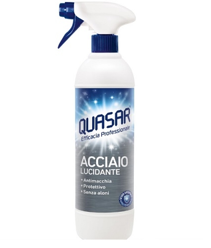 Detergent italian pentru inox Quasar Acciaio – Italian shops ofera clientilor sai un detergent special , Quasar Acciaio, ce îndepărtează efectiv murdăria făcând suprafețe din oțel să strălucească (cum ar fi blaturi, hote, sobe, aparate), fără a lăsa urme și halouri.