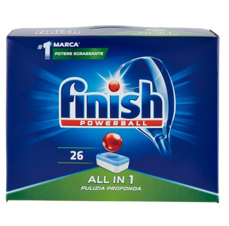 Detergent pentru masina de spalat vase Finish Tutto in 1 PowerBall 26 utilizari – detergent pentru masina de spalat vase, cu o tehnologie studiata sa elimine reziduurile cele mai dificile, lasand vesela fara aloni.