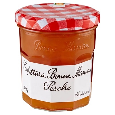 Dulceata de piersici Bonne Maman este un deliciu alaturi de o gustare de branzeturi maturate. Gustul dulce al piersicilor contrasteaza cu gustul intens, specific al branzei maturate. La fel de bine, duceata de piersici poate fi utilizata pentru a prepara o tarta frageda cu dulceata, croissante, clatite sau cornulete cu dulceata.