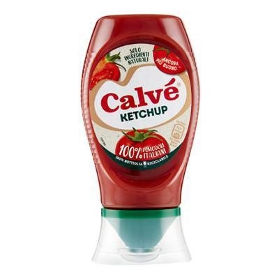 Ketchup clasic Top Down Calve contine doar rosii cultivate in Italia, cu adaos minimal de zahar si otet.