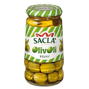 Masline verzi intregi Sacla sunt excelente pentru a fi gustate singure, cu un aperitiv clasic si pentru a imbogati aroma oricarui fel de mancare.