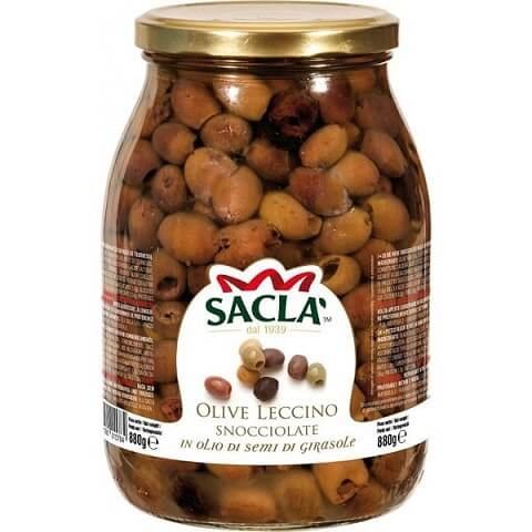 Masline negre fara samburi Leccino Sacla sunt masline negre din soiul Leccino, conservate in ulei de floarea-soarelui. Sunt foarte asemanatoare la gust cu binecunoscutele masline Taggiasche.