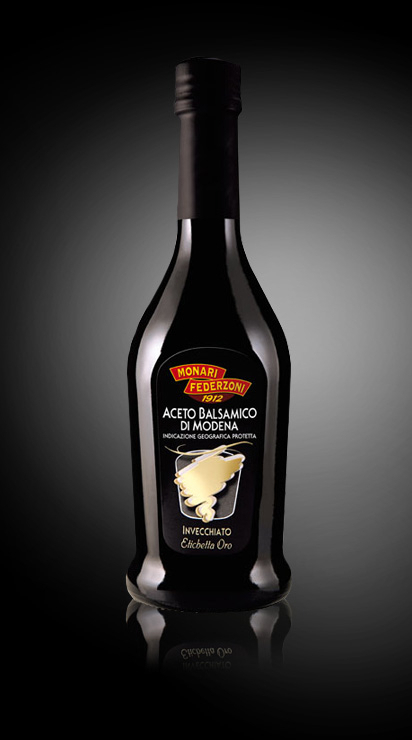 Monari Federzoni Otet Balsamic eticheta aurie 500ml – Din pasiunea unei familii din Modena pentru un teritoriu si o traditie unice, se naste excelenta produselor Monari Federzoni,marca DO.C made in Italia. Aceasta produce inca din 1912, otet alb, otet balsamic, sosuri , glazuri speciale din otet balsamic. Otetul balsamic eticheta aurie se remarca printr-un design inovativ al sticlei si o eticheta speciala, care pune in relief calitatile excelente ale produsului maturat timp de trei ani. Ideal pentru branza, orez , salate, fructe proaspete sau inghetata. Ingedient obligatoriu al dietei mediteraneene, otetul balsamic este cunoscut pentru proprietatile sale terapeutice : ajuta la slabire, imbunatateste digestia, controleaza glicemia, combate anemia si osteoporoza.