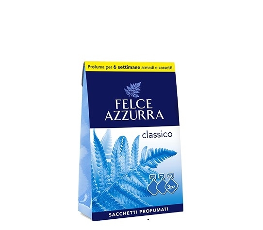 Odorizante Lenjerie Dulap Felce Azzurra parfum clasic au la baza un parfum inconfundabil obtinut din peste 100 de esente din ingrediente naturale, intr-o reteta proprie a marcii Felce Azzura.