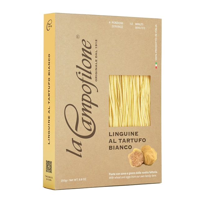 Paste italiene Linguine cu trufe albe La Campofilone sunt paste artizanale cu trufe albe, o delicatesa apreciata de iubitorii de trufe si specialitati cu trufe.