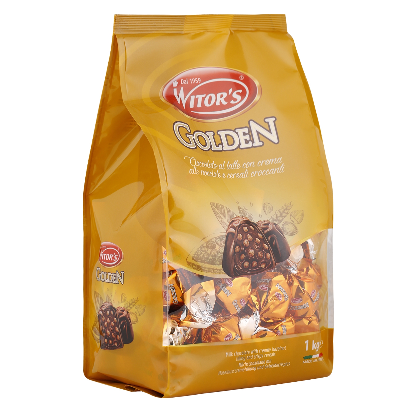 Praline Witor’s Golden din ciocolata cu lapte si umplutura cremoasa de alune si cereale crocante 1kg