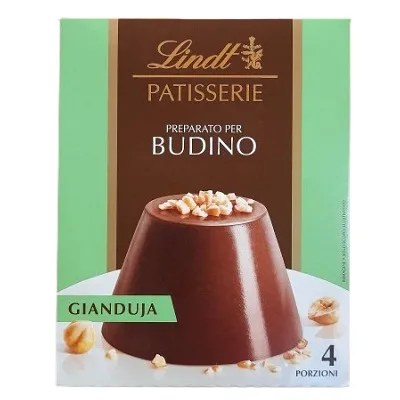 Preparat pentru Budinca de ciocolata gianduja Lindt Patisserie 95g – 4 portii, un desert foarte usor de preparat, in cateva minute!