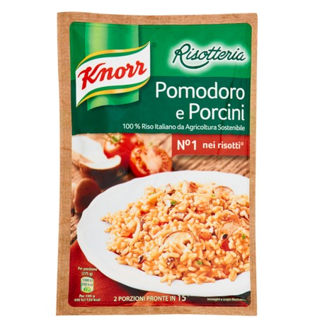 Orez cu roșii și ciuperci 175g Knorr – Un produs din gama Risotto Knorr, de orez cu rosii si hribi, usor de preparata in putine minute si delicios.