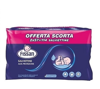 Servetele umede pentru bebelusi Fissan Salviettine Alta Protezione 114 buc – O marca de traditie, nascuta in 1930, cu inimitabilele Pudra Fissan, respectiv Pasta Fissan, produse pentru nou-nascuti. In cursul anilor, gratie pasiunii si dedicarii cercetatorilor Fissan, s-a creat o gama larga de produse hipoalergenice, actualmente cea mai cautata gama in materie.