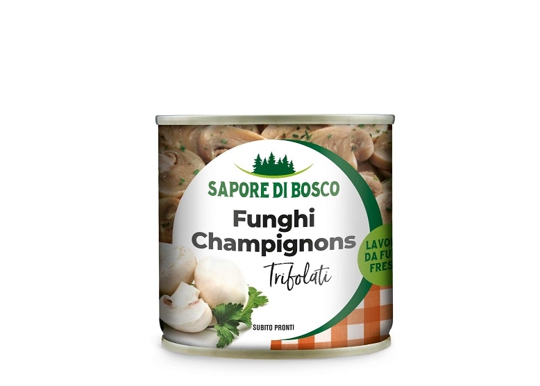 ”Ciuperci trifolate” Sapore di Bosco este o conserva obtinuta din ciuperci prelucrate in stare proaspata.