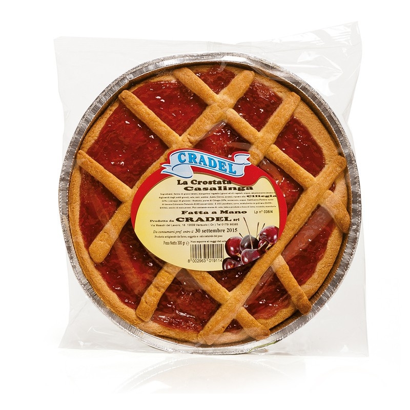Tarta frageda cu dulceata de cirese Crostata Cradel este preparata din aluat fraged, cu o umplutura de dulceata de cirese.